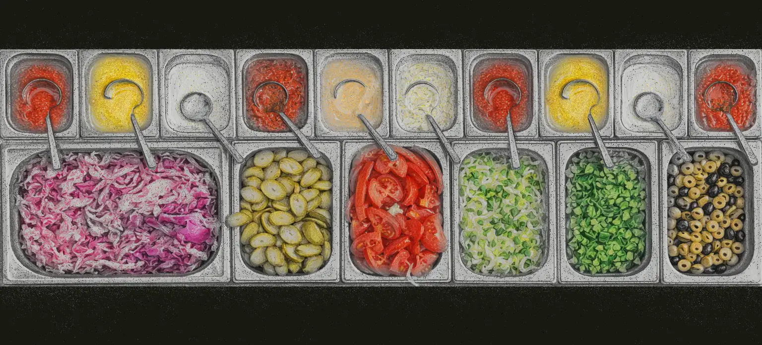Față de fast foodul european clasic, mâncarea libaneză vine cu alt echilibru. Nu se bazează doar pe cantitate sau pe sosuri grele, ci pe combinații care merg firesc împreună: carne bine condimentată, lipie ușoară, salate proaspete, murături, hummus, tahini și mirodenii care dau personalitate fiecărui preparat.